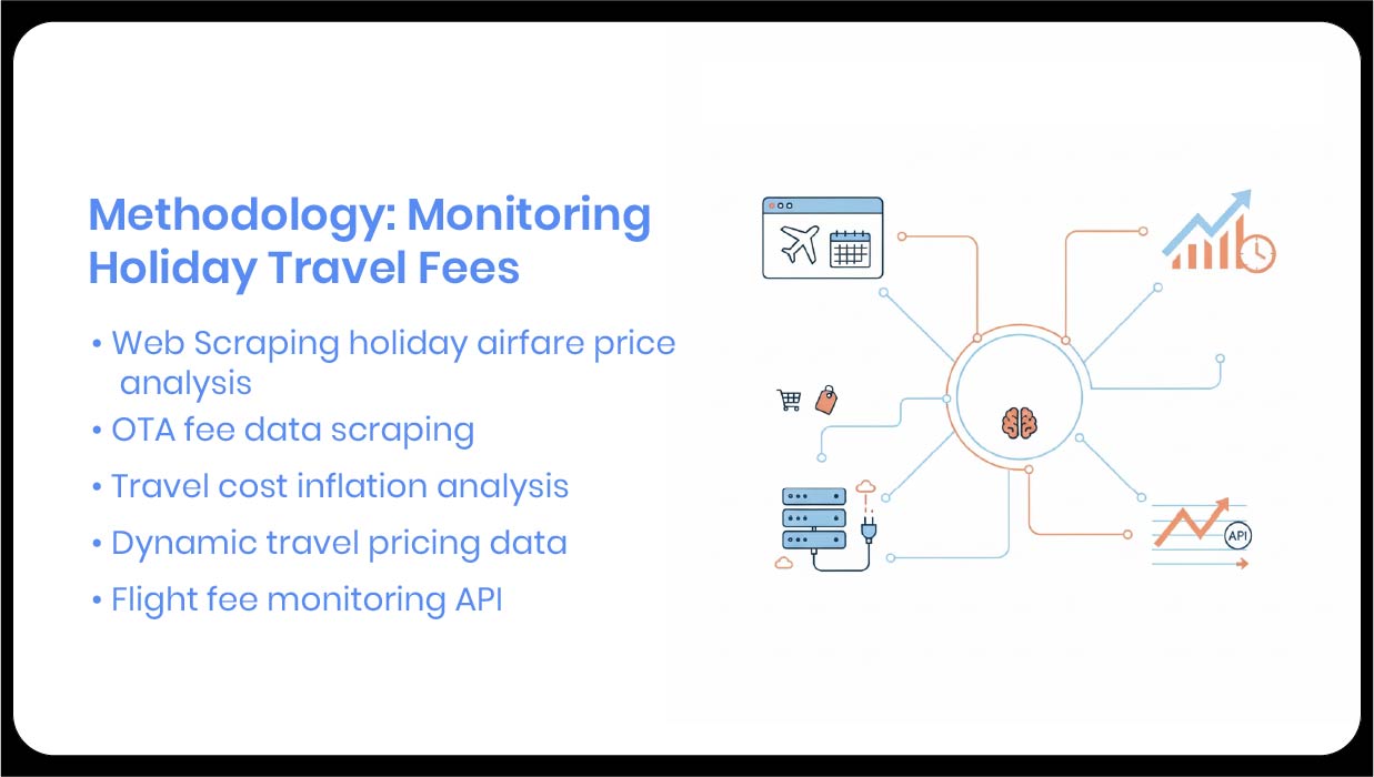 Holiday travel add-on fees play a crucial role in influencing consumer behavior, as passengers increasingly weigh costs for seat selection, luggage, and in-flight services. Airlines employ advanced travel pricing intelligence services to track real-time fee fluctuations and adjust pricing strategies accordingly. By utilizing Travel, hospitality, and tourism website scraper, carriers and online travel agencies can monitor trends, detect demand surges, and analyze competitive pricing across multiple platforms. These insights allow for effective peak season travel price monitoring, helping airlines and OTAs optimize revenue, manage capacity efficiently, and improve the overall traveler experience. Understanding these dynamic fees ensures both profitability for airlines and smarter, cost-effective choices for passengers during high-demand holiday periods.