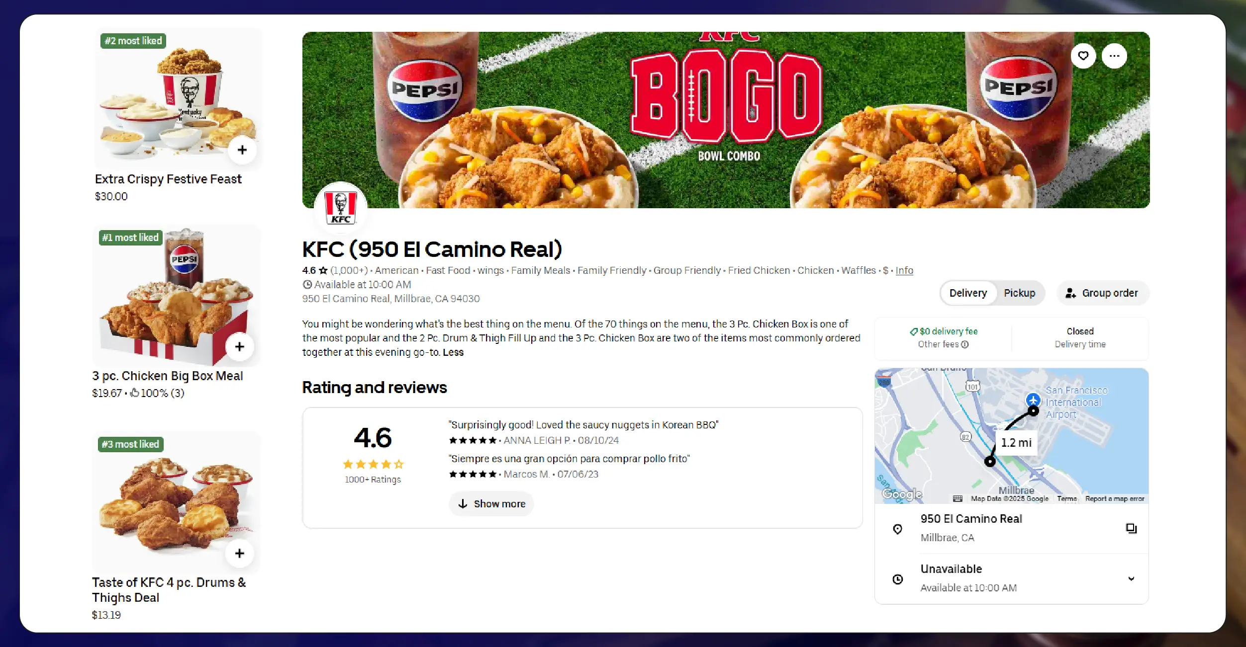 - Customer Reviews and Ratings: KFC customer reviews scraping helps understand customer satisfaction and sentiment. It captures ratings, textual reviews, and feedback trends, which can be used to enhance service quality and marketing campaigns.