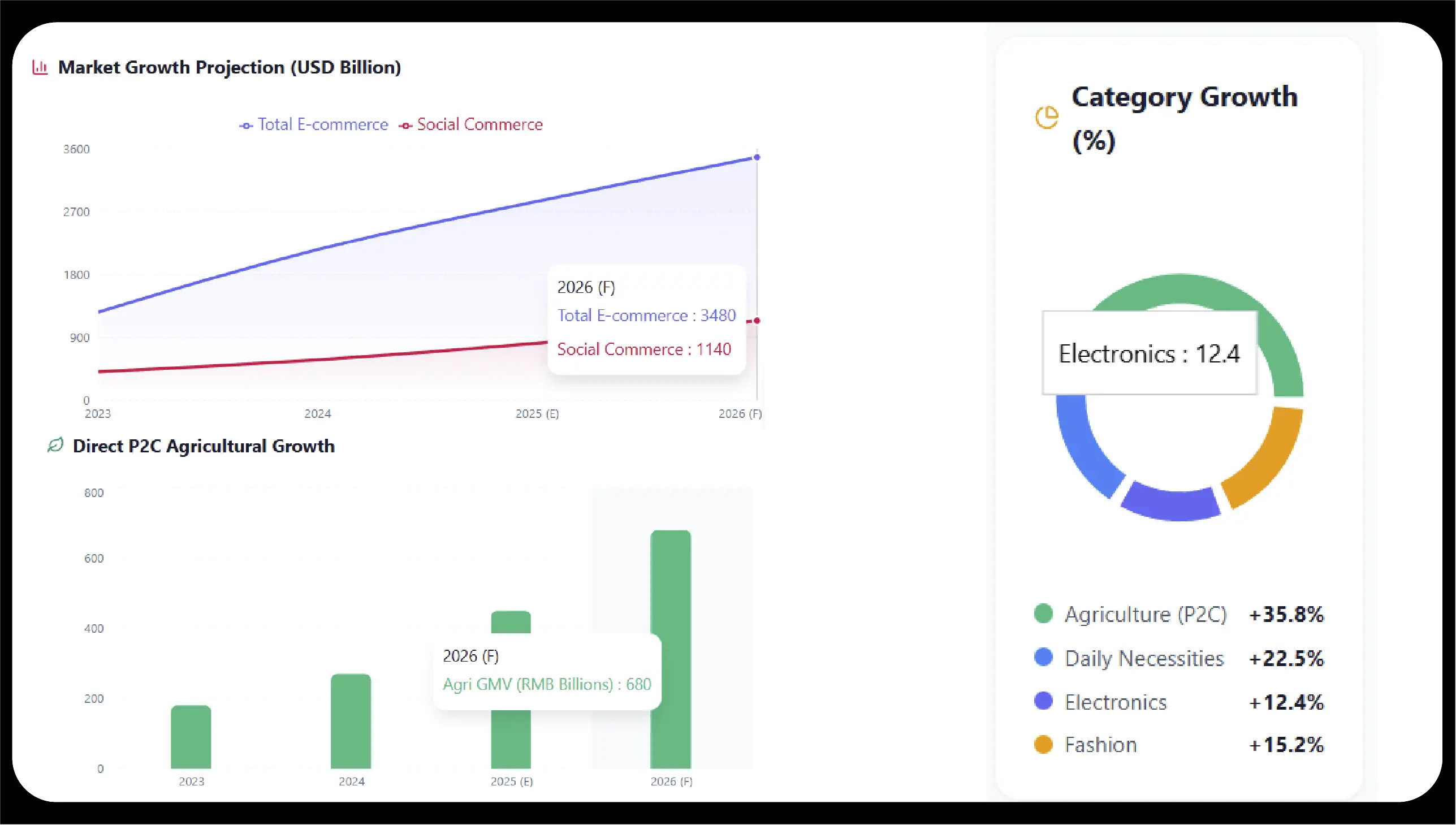 Consistent with broader Chinese consumption trends, agricultural goods and groceries remain strong drivers of Gross Merchandise Value (GMV) on the platform. This aligns with reported growth in agricultural sales and participation from rural producers.