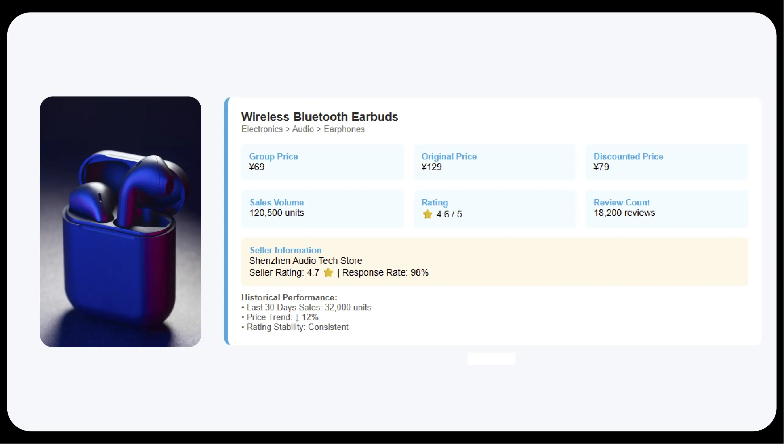 Pinduoduo Real-Time Competitive Marketplace Intelligence equips sellers with situational awareness of price adjustments, emerging hot items, and competitor offerings. Companies that harness such data can fine-tune their go-to-market strategies and reduce manual competitive research efforts significantly.