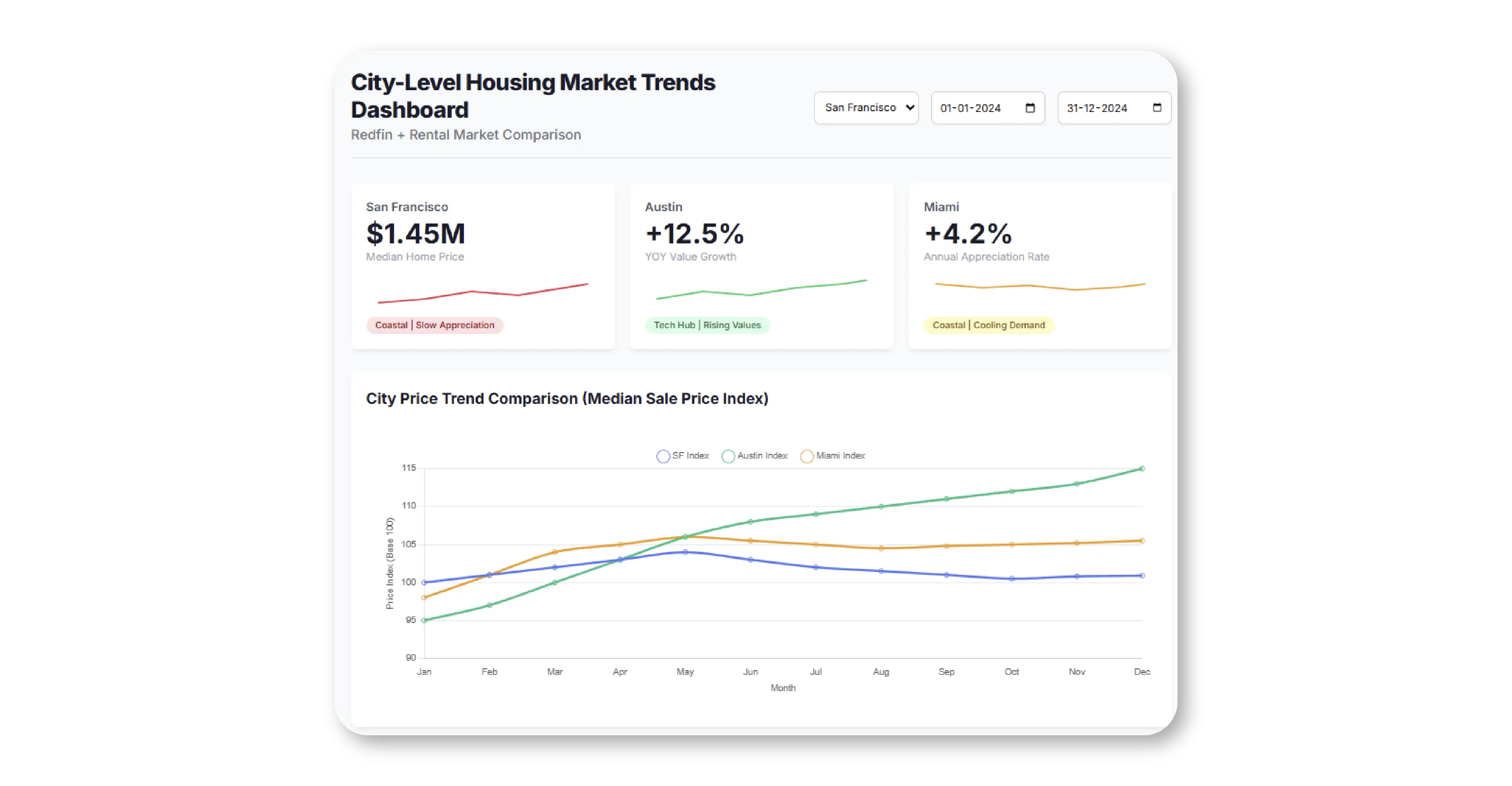 A critical step in understanding housing trends is analyzing city-level housing market trends data collection from Redfin. Cities like San Francisco, Austin, and Miami exhibit unique pricing patterns influenced by local supply, demand, and migration trends. For instance, coastal cities are witnessing a slowdown in appreciation rates, while inland tech hubs continue to experience rising property values. By aggregating city-level insights, investors can pinpoint opportunities for high returns or identify undervalued neighborhoods for future investment.