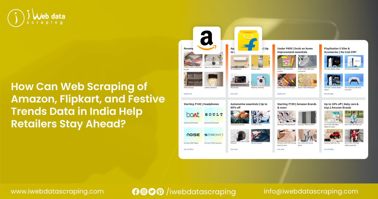 India's grand festive season has always been a battleground for e-commerce giants. With events like the Flipkart Big Billion Days and Amazon's Great Indian Festival, millions of customers eagerly log in to grab deep discounts, limited-time offers, and exclusive bundles. To make sense of this data-driven war for customer attention, web scraping Amazon Flipkart Festive Trends Data India emerges as a powerful tool to track patterns, pricing shifts, and shopper behavior during these peak sales periods.