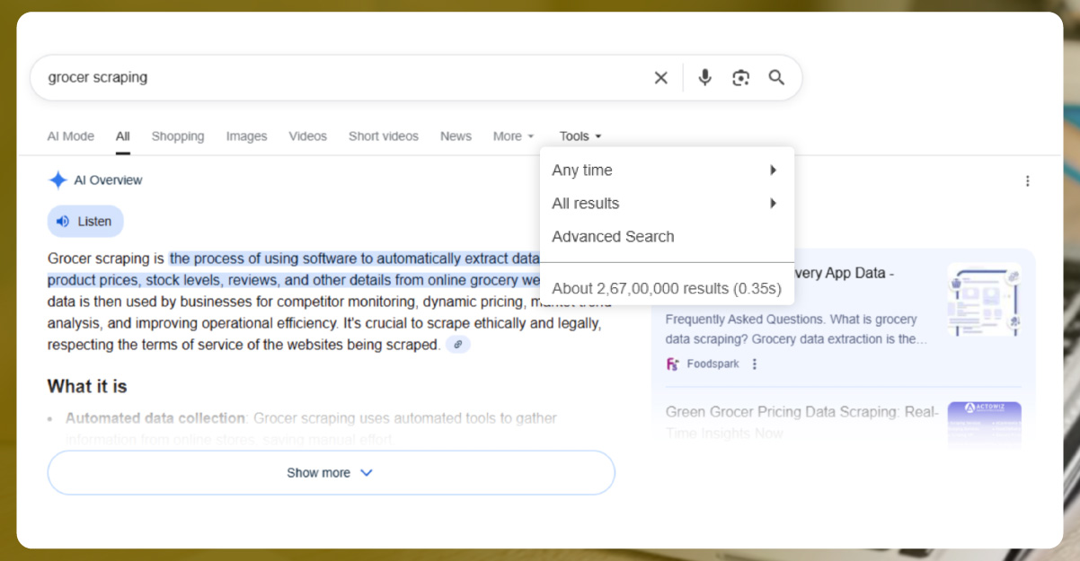 At the same time, search engines are continually evolving, and capturing results in real time provides a deeper understanding of the competitive landscape using SERP scraping, tracking patterns, identifying changes, and enabling smarter optimization strategies.