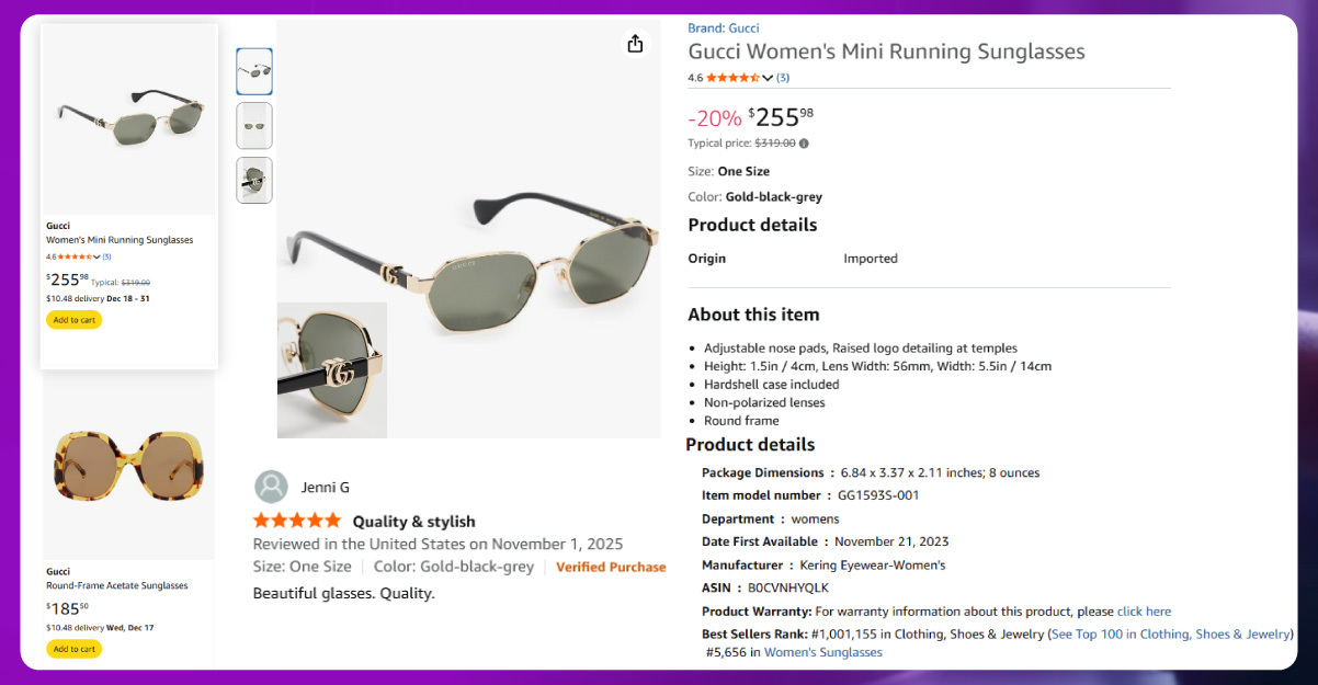 Limited stock and exclusive drops are core strategies in luxury fashion. Gucci women’s clothing price tracking enables analysts to monitor price movements and understand demand cycles. Luxury fashion product data scraping allows tracking of product availability, identifying sold-out items, or those in limited quantities. This approach provides insights into consumer demand patterns, seasonal trends, and potential opportunities for resale or restocking strategies.