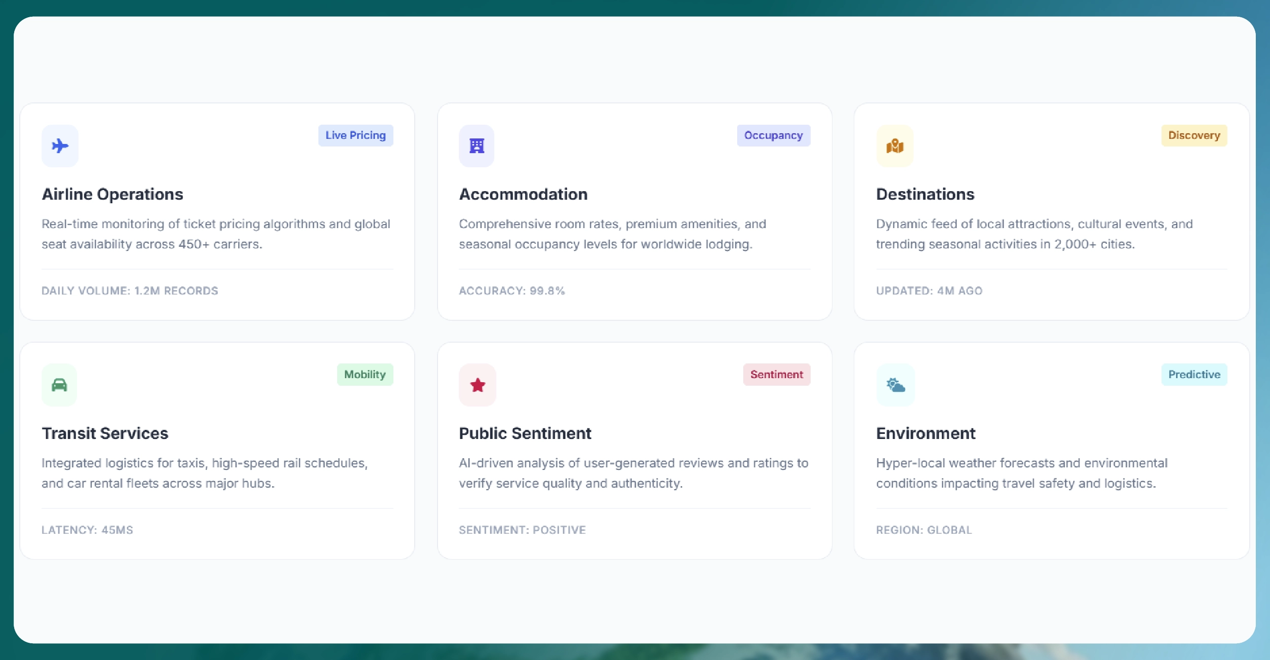 By integrating these datasets, AI systems create a 360-degree view of travel possibilities, enabling highly informed decision-making.